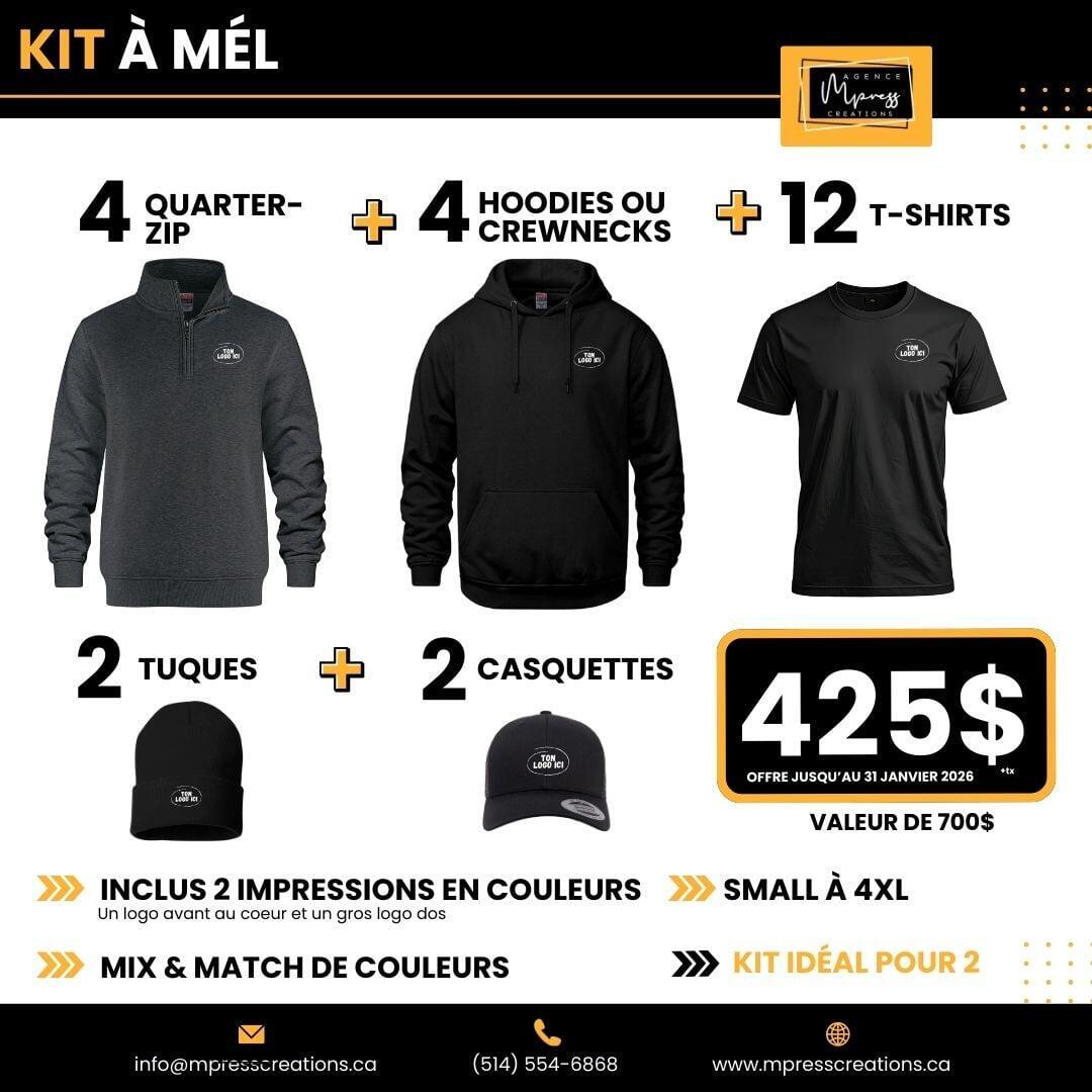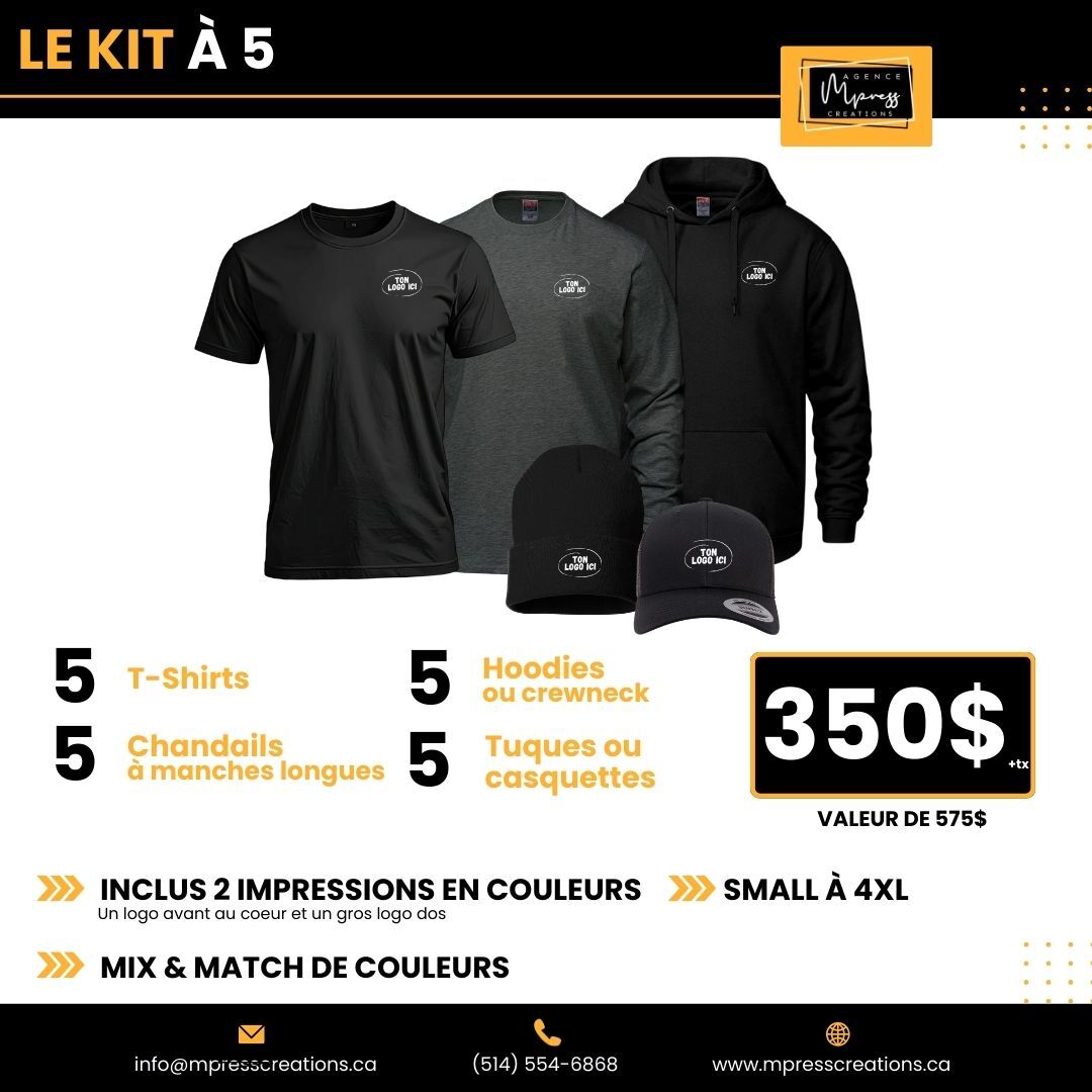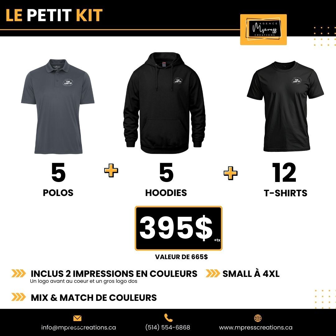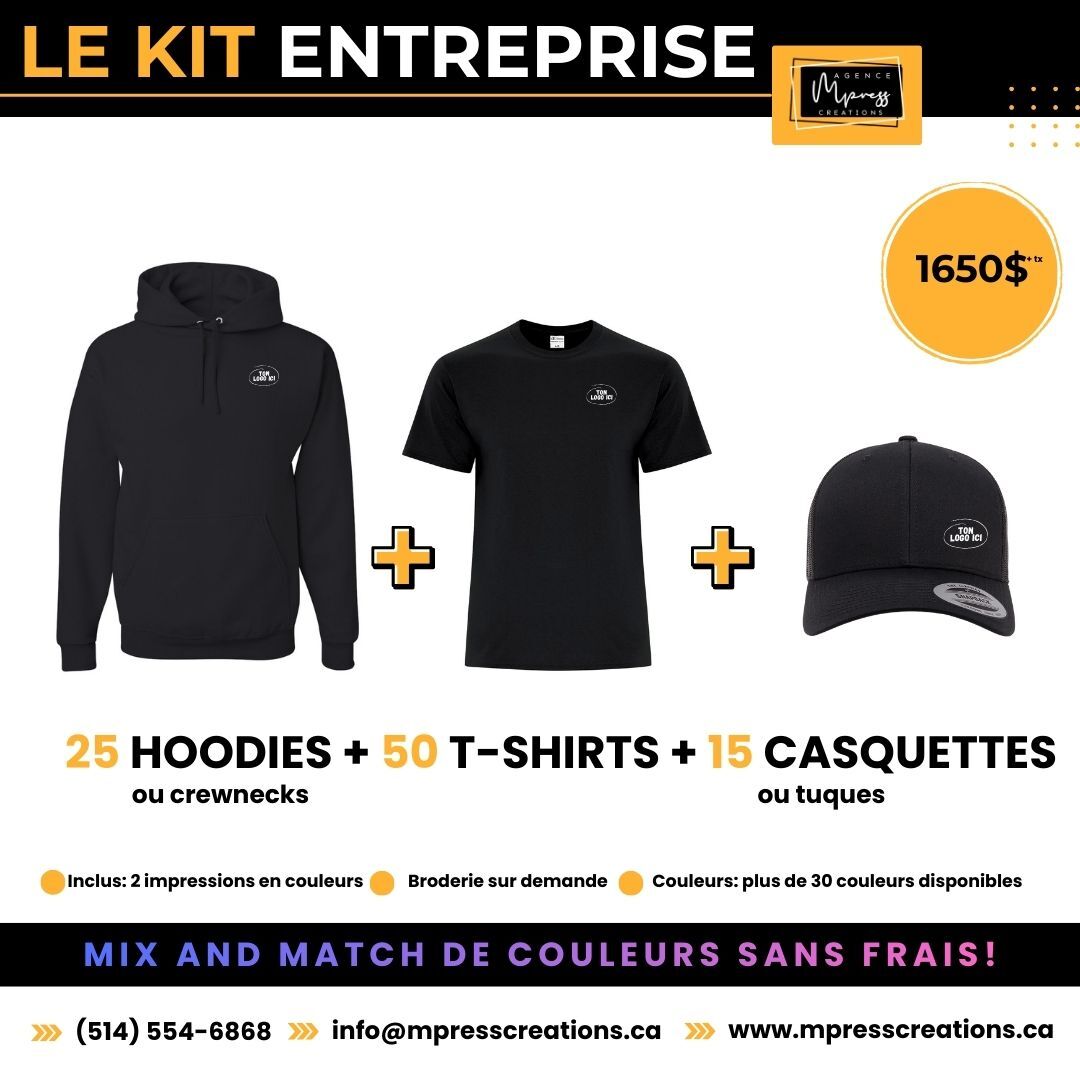 Nos ensembles inclus un choix de MIX and MATCH parmis divers articles. Il est possible de personnaliser vos kits sur mesure.