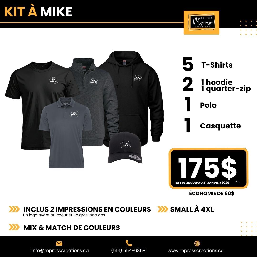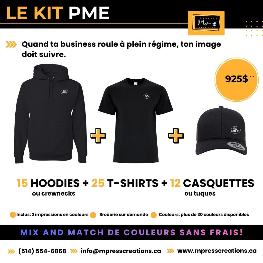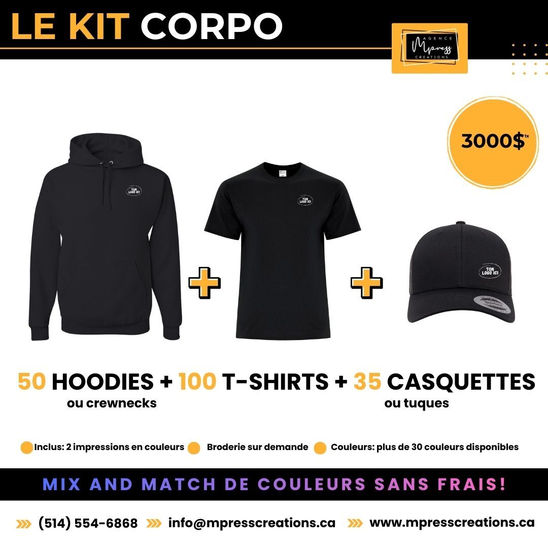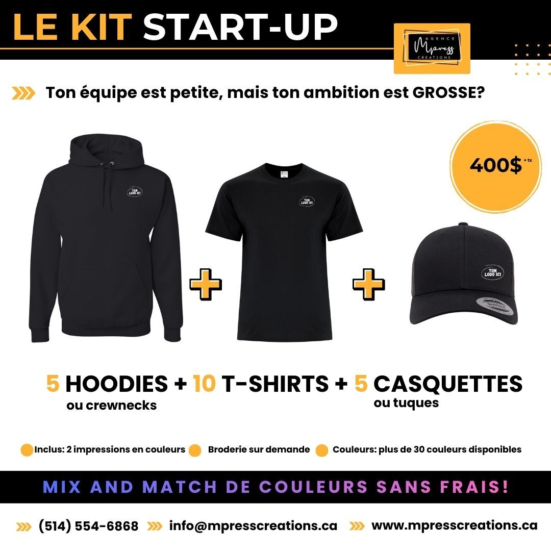 Nos ensembles inclus un choix de MIX and MATCH parmis divers articles. Il est possible de personnaliser vos kits sur mesure.