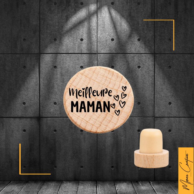 Gravure personnalisée sur un bouchon réutilisable en bois et en caoutchouc en forme de T.